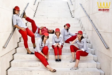 Este es el menú que nos presenta La Guapa Teatre, con el propósito de hablarnos y meditar sobre la realidad en la que vivimos, como ya hizo en su anterior espectáculo Call Center. Mcbeth con queso intenta ser un retrato de una situación laboral real, como puede ser el entorno de un trabajo precario al que se ve abocado una gran parte de la población para sobrevivir y poder tirar adelante. El drama de un trabajo con pocas o ninguna gratificación, en la que el salario no anima a nadie a hacer más de lo que ya hace, aunque las exigencias desde arriba, desde la dirección, son cada vez mayores y cada vez más pesadas y anodinas. A esto se puede sumar una clientela que ni en sus formas ni en sus comportamientos, como intuimos en la obra, son los más cívicos y sociales.