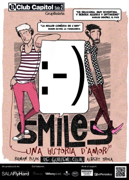 “Smiley” es un nuevo soplo de aire fresco en la cartelera teatral y un vendaval para la taquilla. Porque Clua sabe plantear la historia que siempre hemos pedido ver revistiéndola de una rabiosa actualidad gracias a su hábil contextualización. En ella, se desenvuelven con irresistible encanto sus dos protagonistas, que responden a los más reconocibles arquetipos. Por un lado, una “musculoca” con un corazón más grande aún que sus bíceps (emotivo Ramon Pujol). Por otro, una “marica” cretina intelectual (carismático Albert Triola). Condenados a conocerse. Impacientes por cumplir su condena: amarse eternamente.