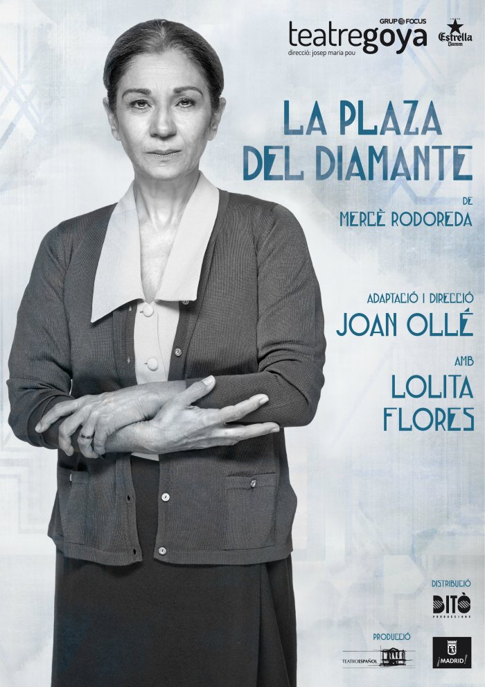 «La plaza del Diamante, de Mercè Rodoreda, se desarrolla en los años de la posguerra. Cuenta la historia de Natalia «La Colometa» una chica que se siente perdida en el mundo. Huérfana de madre, verá partir y morir a sus seres queridos, pasará hambre y miseria y se verá muchas veces incapaz de sacar adelante a sus hijos. Lolita Flores interpreta, con su característica fuerza en los escenarios, este duro monólogo interior, costumbrista y desgarrador, lleno de simbolismos».