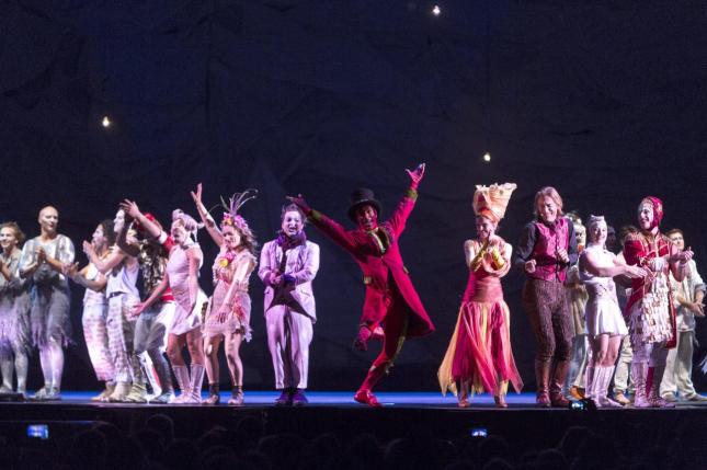 La carpa de Tótem reúne a 46 acróbatas, actores, músicos y cantantes procedentes de 27 países y un total de 70 técnicos y empleados que convierten las cerca de más de dos horas que dura el show en una experiencia sorprendente y maravillosa para las 2500 personas que pueden llenar la carpa.