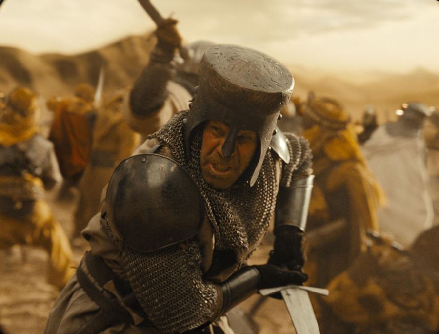 Como decía antes, la película tiene una trasfondo totalmente histórico que se inicia con los largos años de luchas en Tierra Santa que se resumen en las breves escenas iniciales de la película, donde somos testigos de la brutalidad de la Iglesia y sus mandamientos en la Cruzada y la perdida de fe de los dos protagonistas princioales, Behmen y Felson (Y también, y como siempre, de lo errado de la reproducción de una batalla en el cine). Su regreso a Europa nos permitirá ver el horror de la peste y como está ha infectado tanto a los más humildes como a los más poderosos, como el cardenal de Marburgo (un impresionante y deformado por las ulceraciones Christopher Lee). Es seguramente esta una de las mejores representaciones cinematográficas de los horrores que trajo consigo la peste iniciada en el siglo XIV y que acabó con la vida de la mitad de la población de Europa. Tonos oscuros para mostrar la ciudad y su población, cuerpos y caras deformados por la epidemia, por tumores y los bubones (de allí su nombre, peste bubónica), que llegan incluso a hacer sentir y oler la inmundicia y las excrecencias provocadas por la peste.