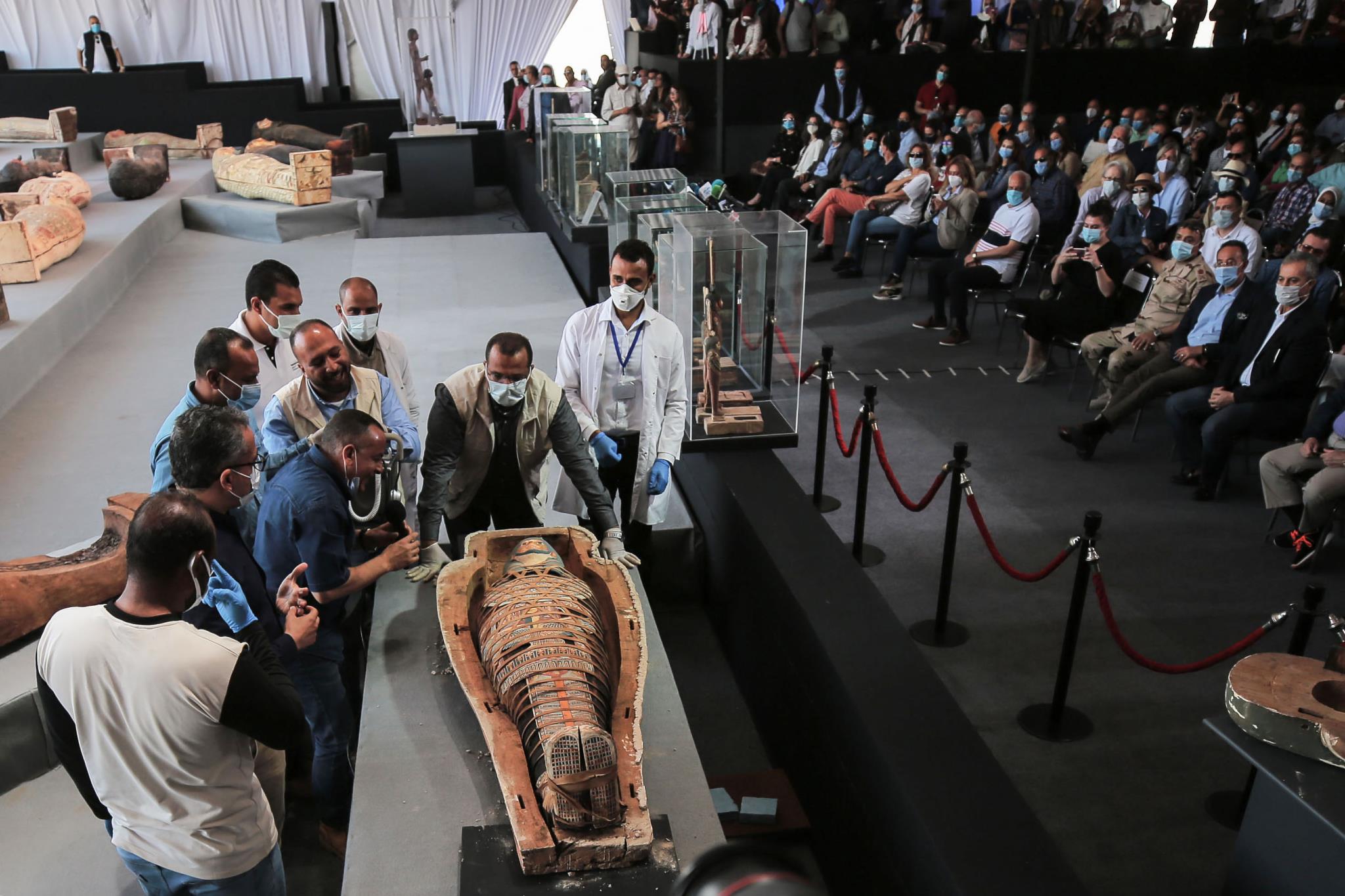 Los sarcófagos o ataúdes de madera, con sus respectivas momias, fueron hallados en tres pozos enterrados a entre 10 y 12 metros de profundidad y fueron exhibidos a la prensa y a un grupo de embajadores acreditados en el país árabe solo un mes después del hallazgo de otros 59 sarcófagos datados unos tres siglos antes.
