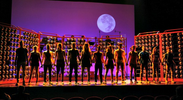 El espectáculo apuesta por reducir el boato técnico y escénico manteniendo, sin embargo, el brío y el número de actores y actrices. De esta forma la música en directo se limita al piano interpretado por Dani Campos, que ofrece un genial acompañamiento a la acción que transcurre sobre el escenario, y la escenografía se reduce a lo mínimo, con una serie de paneles móviles que recuerdan y mucho a los usados en la producción escénica de Boig per tu en la Sala Barts, dirigida también por Ricard Reguant. La solución aunque es práctica y sobre todo económica, no ayuda al espectador a «meterse» en la obra, ideada, me imagino, para contener algún medio escenográfico descriptivo.