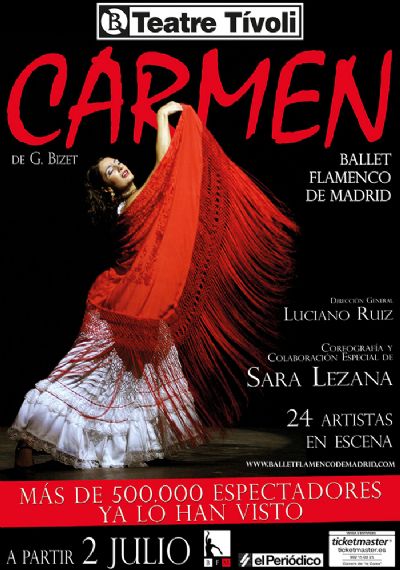 Los cinco primeros que envíen el mail obtendrán cada uno una entrada doble para ir a ver Carmen, ballet flamenco de Madrid en el Teatre Tívoli mañana viernes 19 de julio a las 18:30 horas.
