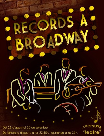 Es en este patrimonio en el que se basa Records a Broadway, un espectáculo musical de pequeño formato que recorre la historia de la calle más famosa de Manhattan. La obra, producida por la compañía La Nota Teatre, nos propone un viaje por los grandes espectáculos musicales representados en Broadway, haciendo especial hincapié en las figuras que los crearon y en los grandes temas que nacieron en los escenarios que orillan la avenida.